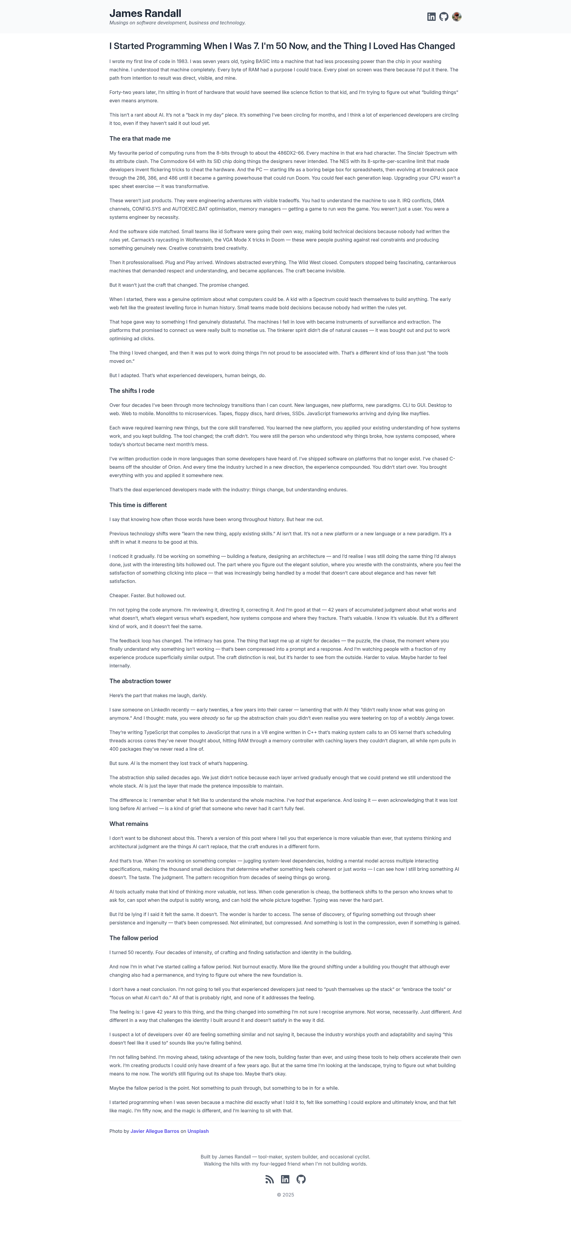 I Started Programming When I Was 7. I'm 50 Now, and the Thing I Loved Has Changed | James Randall