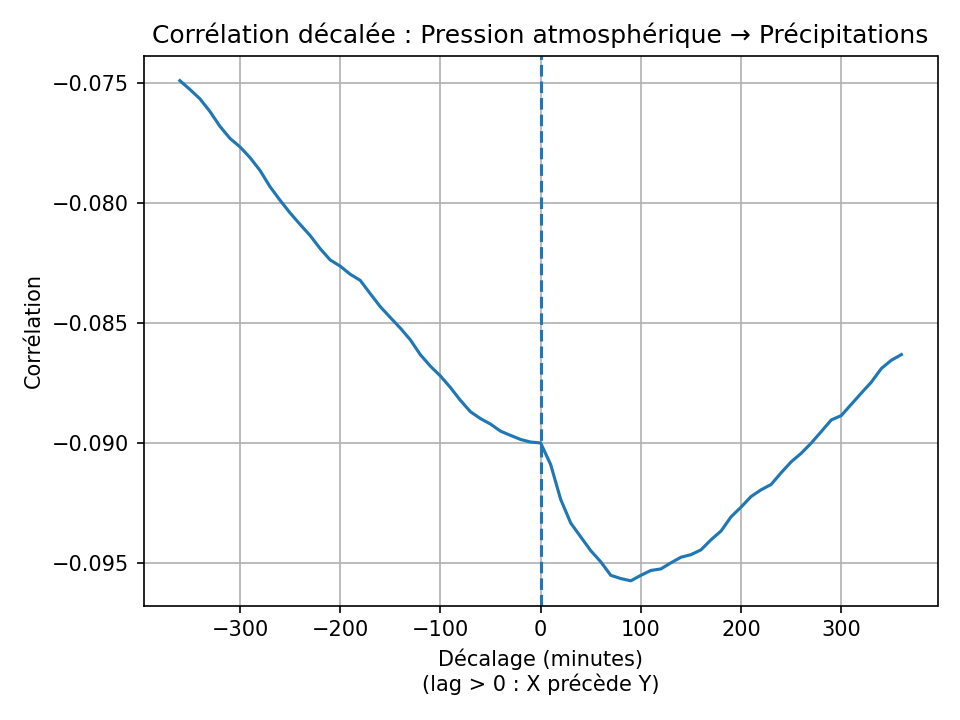 Cette matrice met en évidence les plus fortes corrélations et leur décalage optimal.