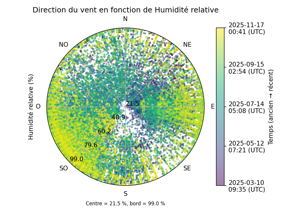 Utilisation de graphiques radiaux pour la représentation de la direction du vent