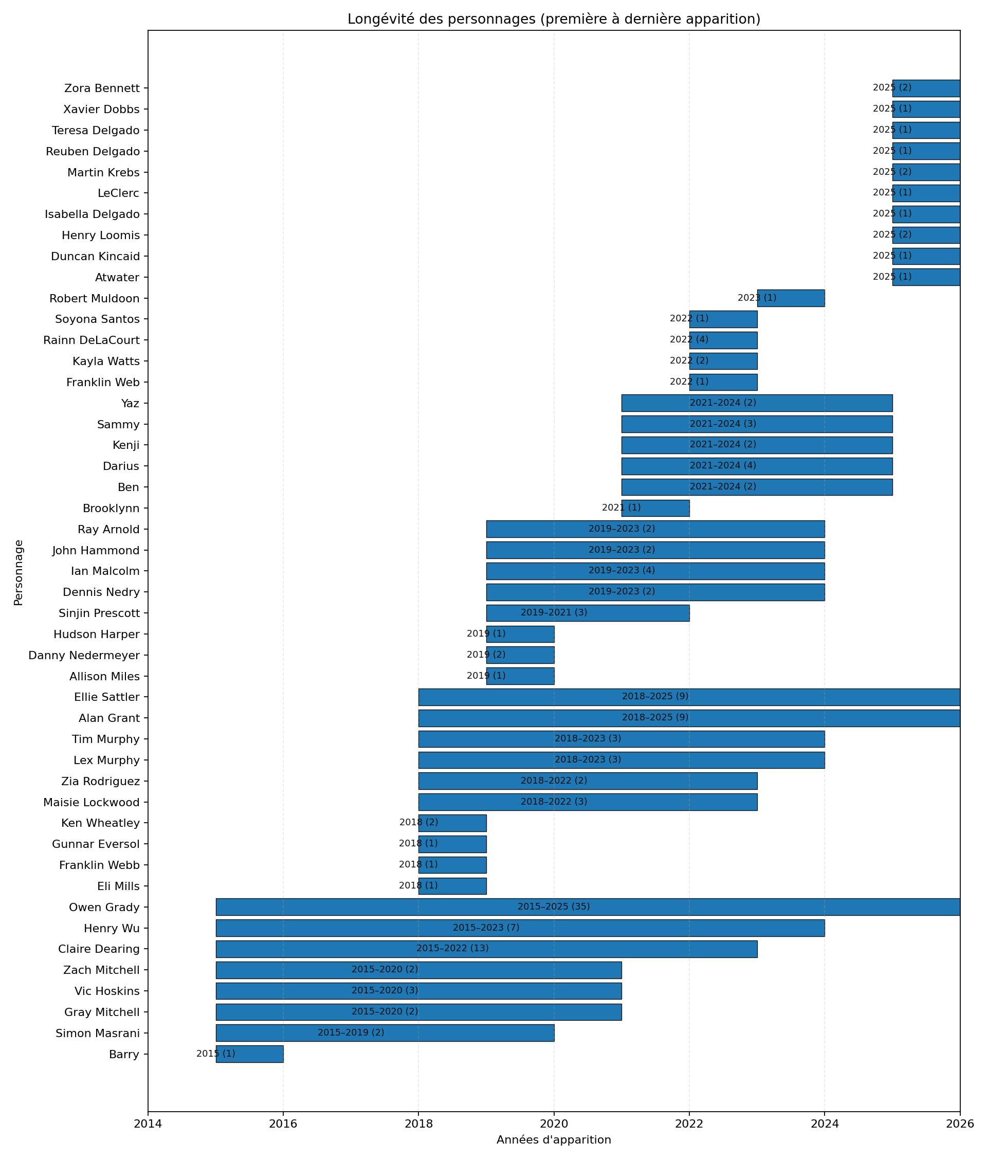 Ajoute le diagramme de longévité des personnages